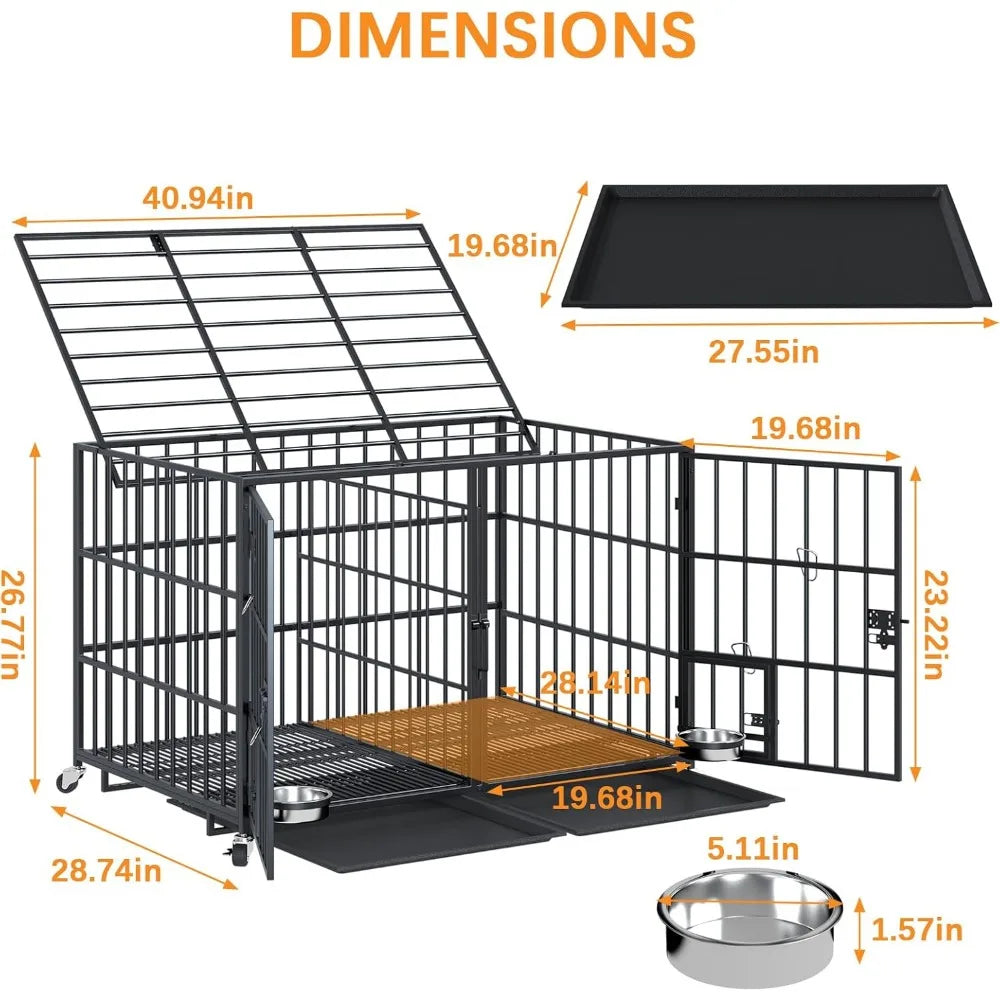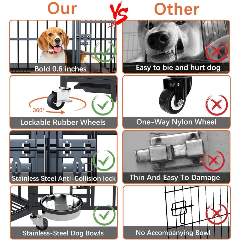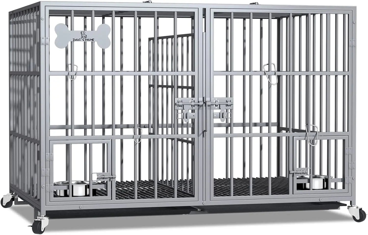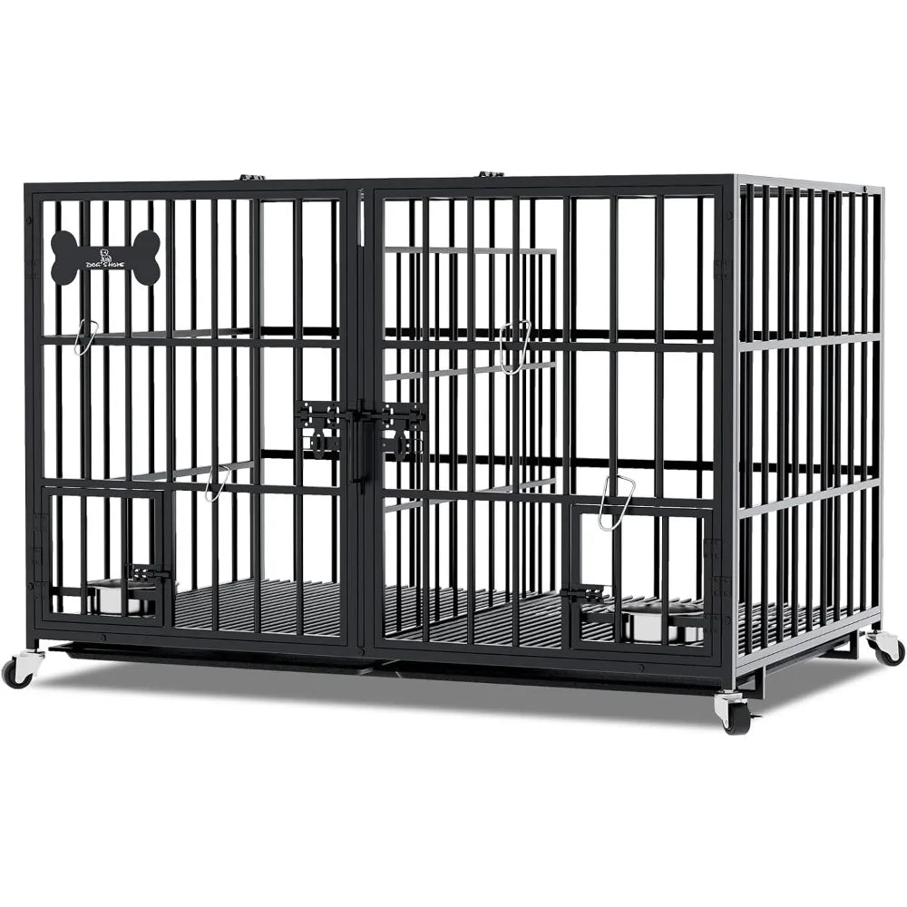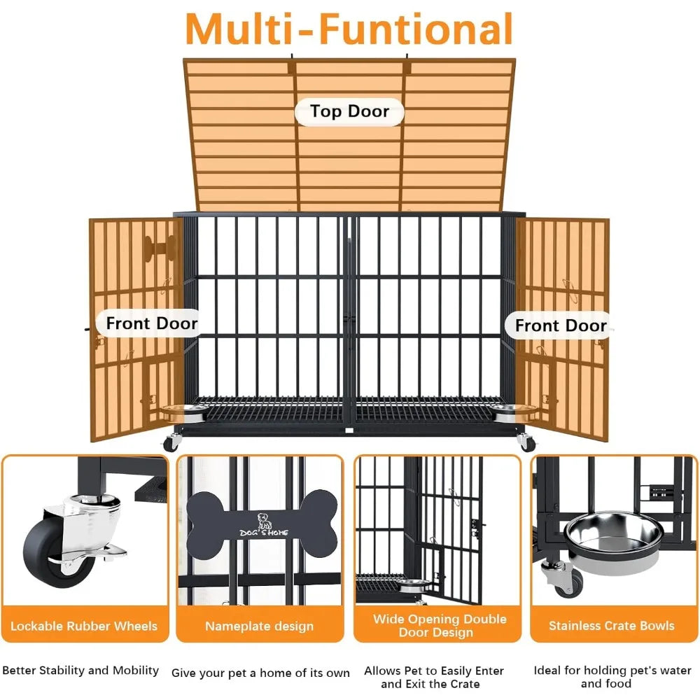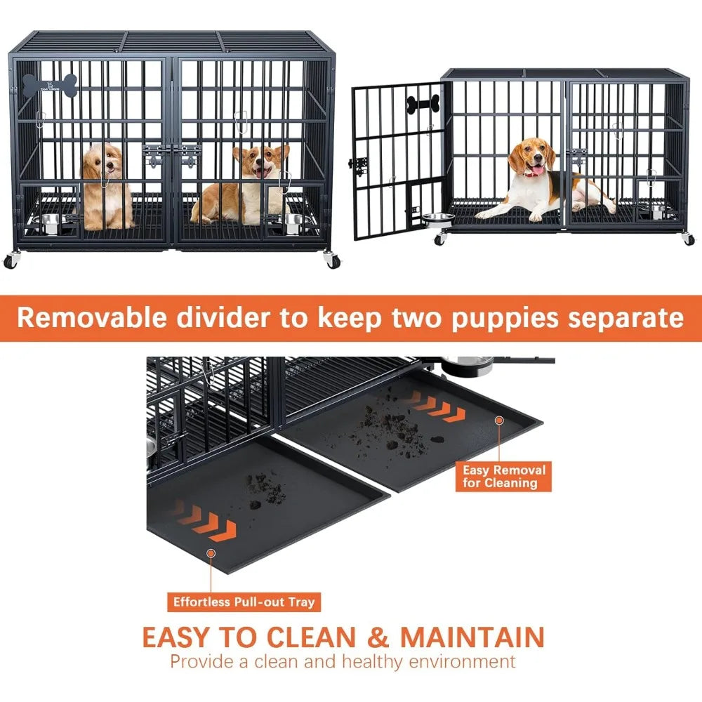 42 Inch Heavy Duty Metal Dog Crate for 2 Large Dog,All Metal Open Top Stackable,Dog Kennel Indoor with Divider and Feeding Bowl