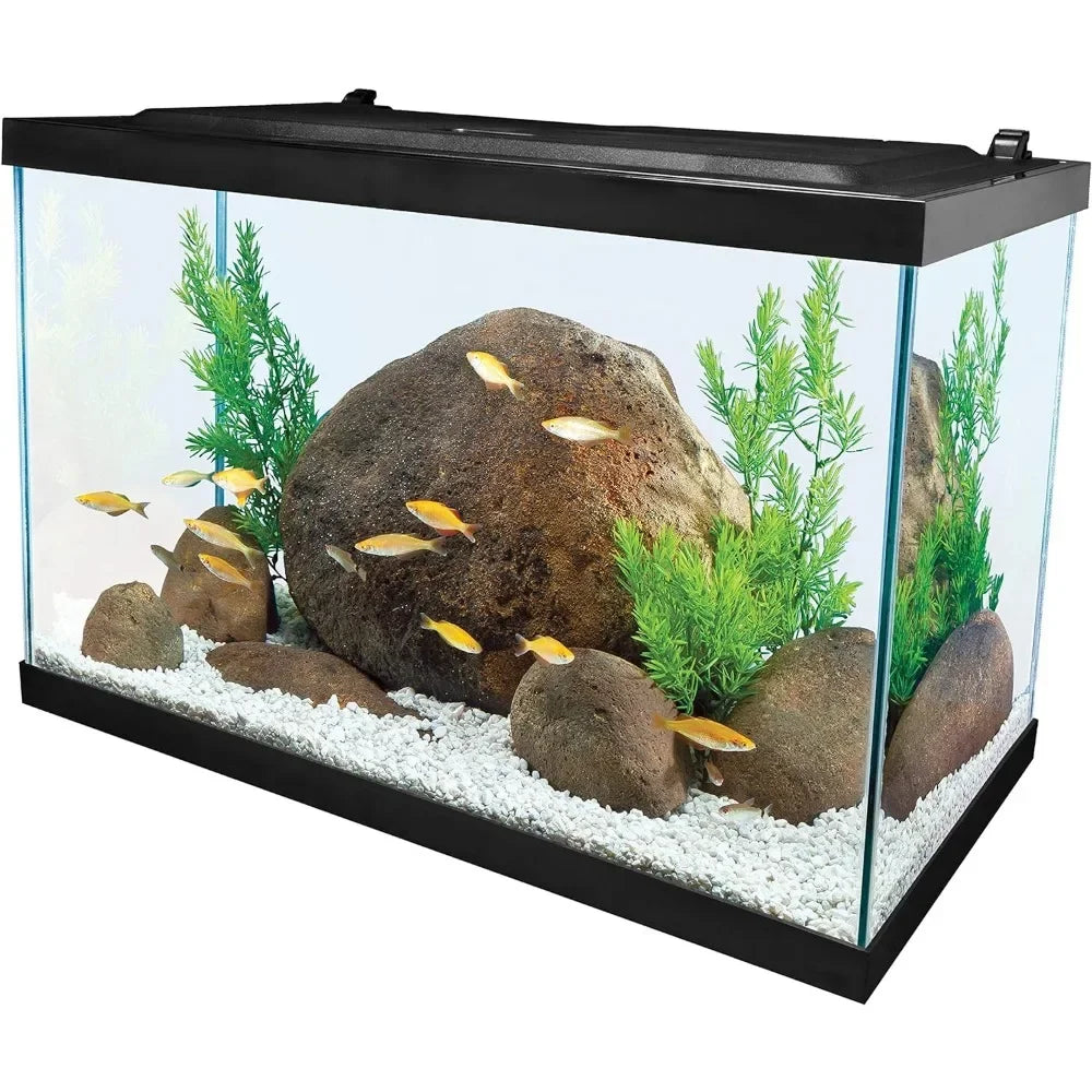 - GLASS AQUARIUM: Rectangular glass aquarium makes an ideal home for your fish.