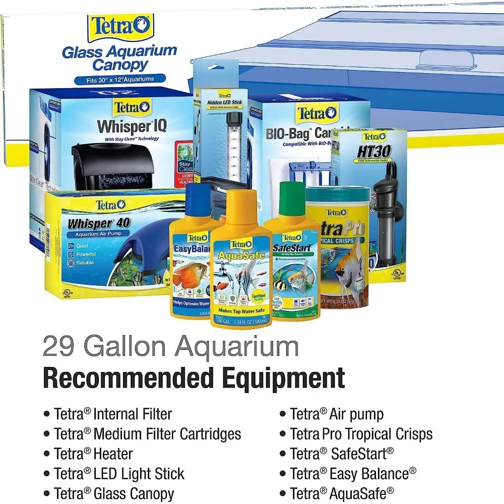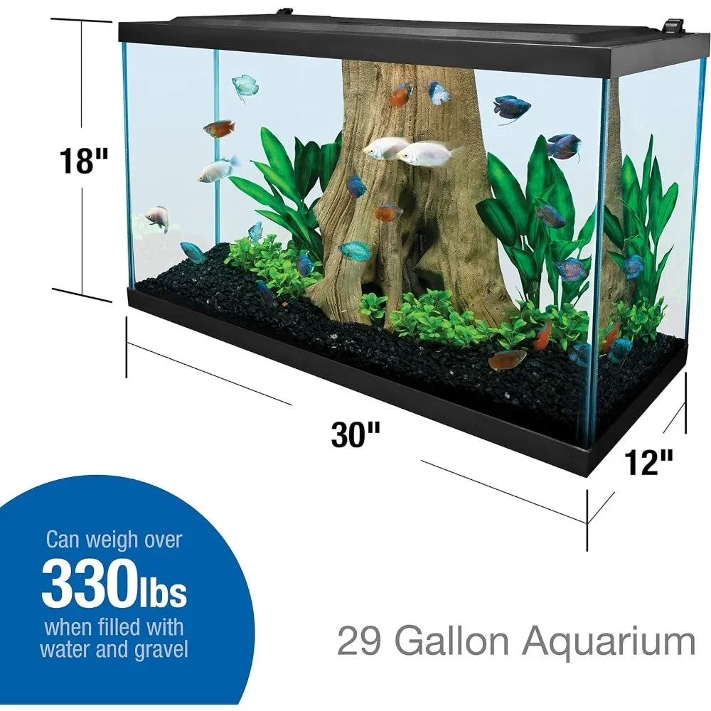 - 29 GALLON TANK: Measures 30 inches wide by 12 inches deep by 18 inches high.