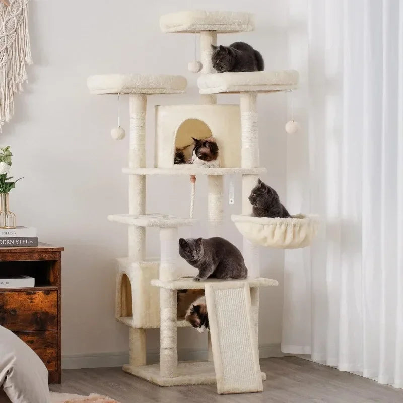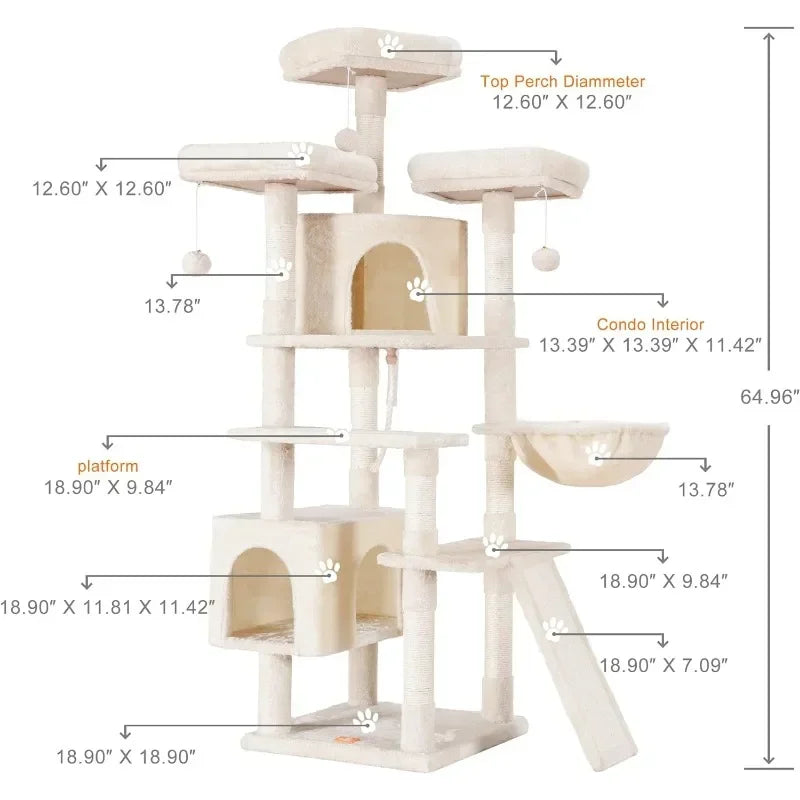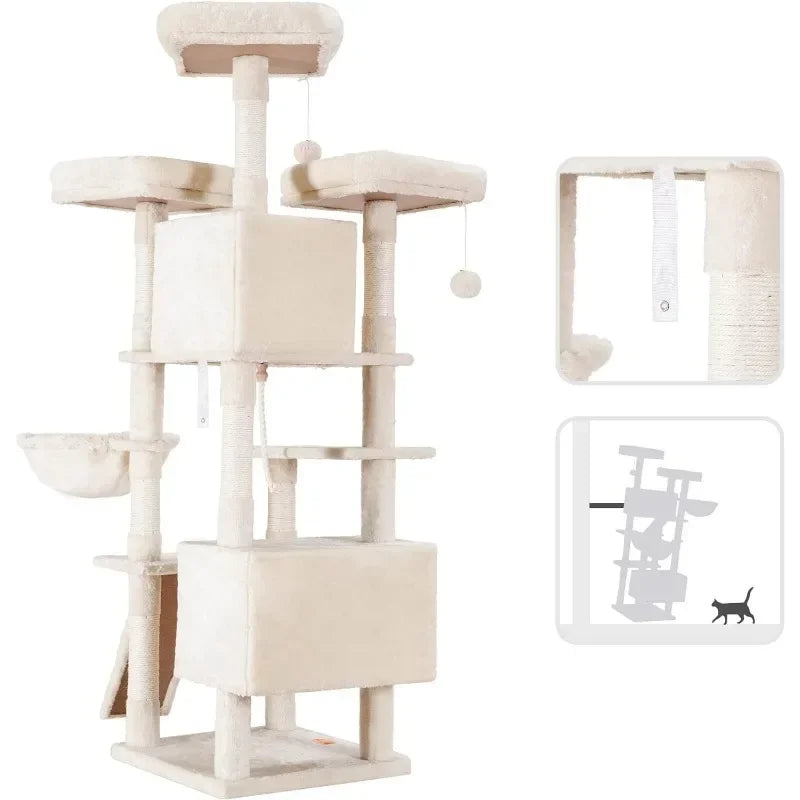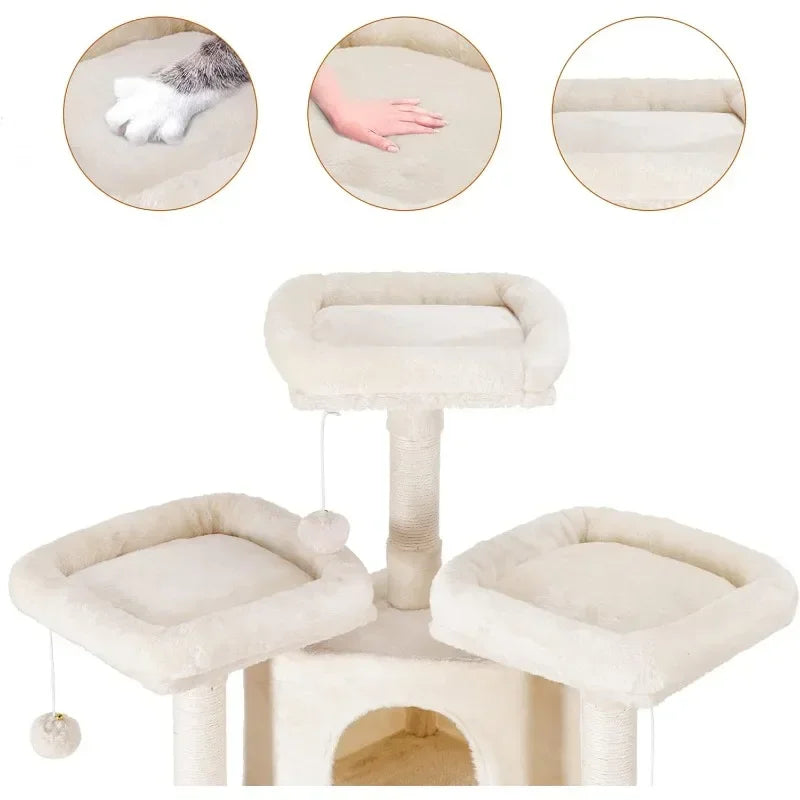 Cat Tree Large Cat Tower for Indoor Cats,Multi-Level Cat Furniture Condo for Cats with 3 Padded Plush Perch, Cozy Basket