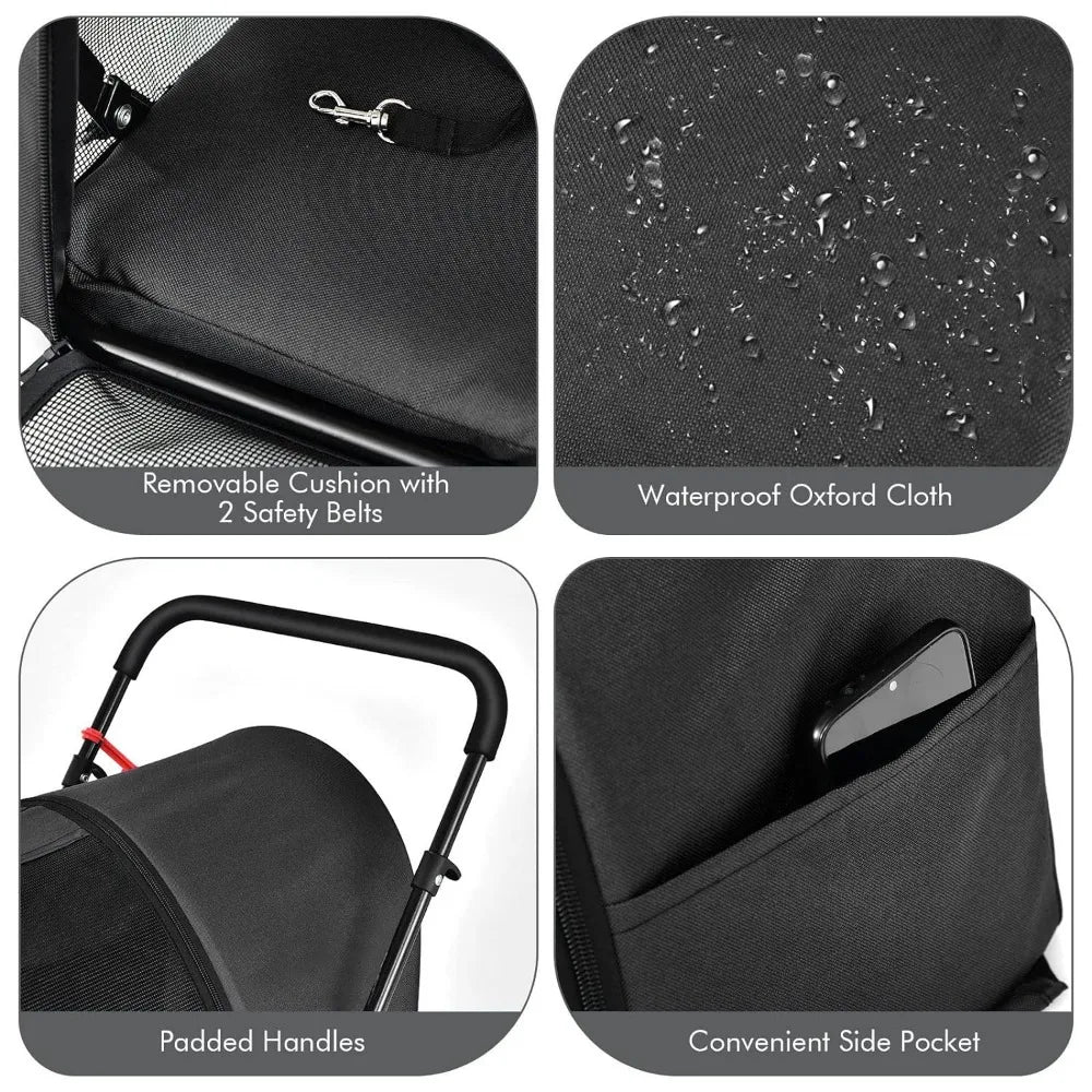 Dual Pet Cart, Equipped with 2 Detachable Tote Bags and Seat Belts, 4 Lockable Wheel Storage Spaces, Cat and Dog Cart (Black)