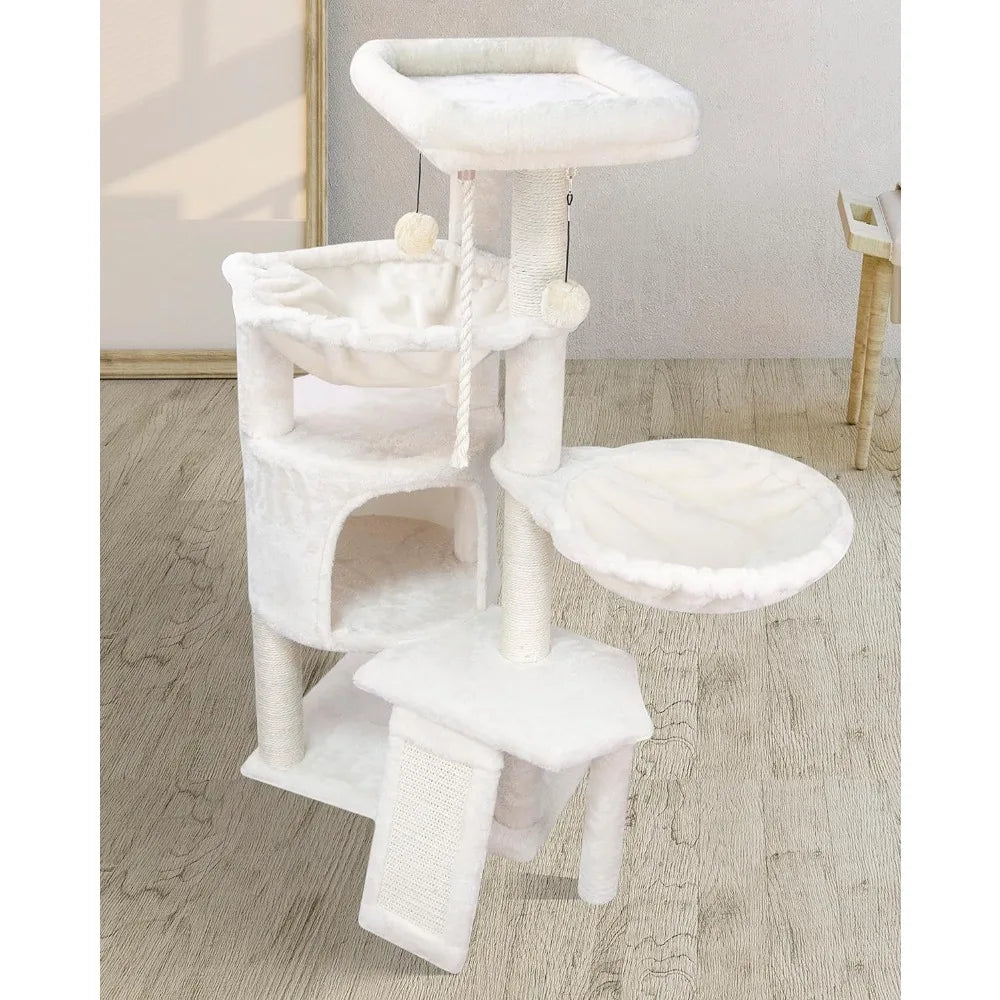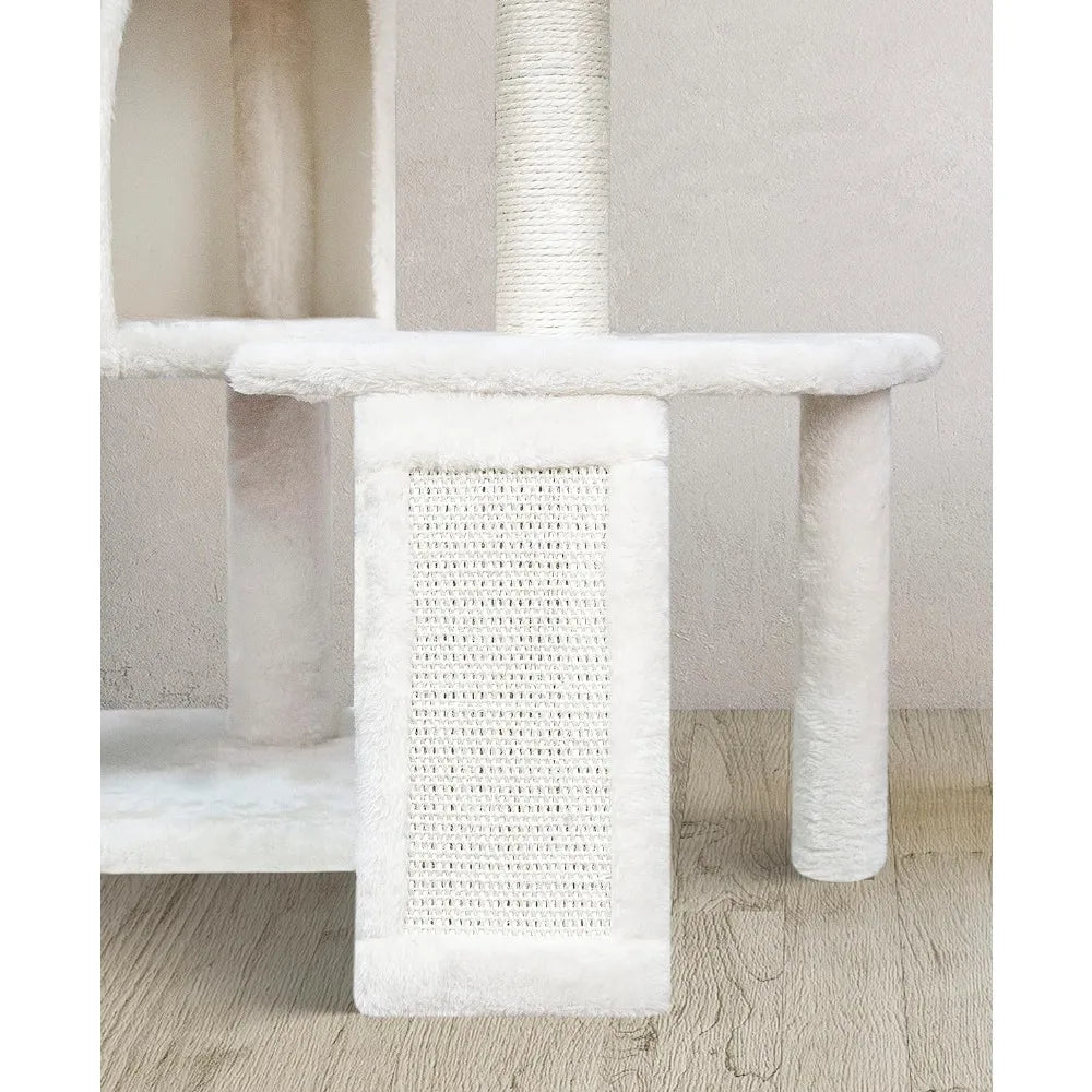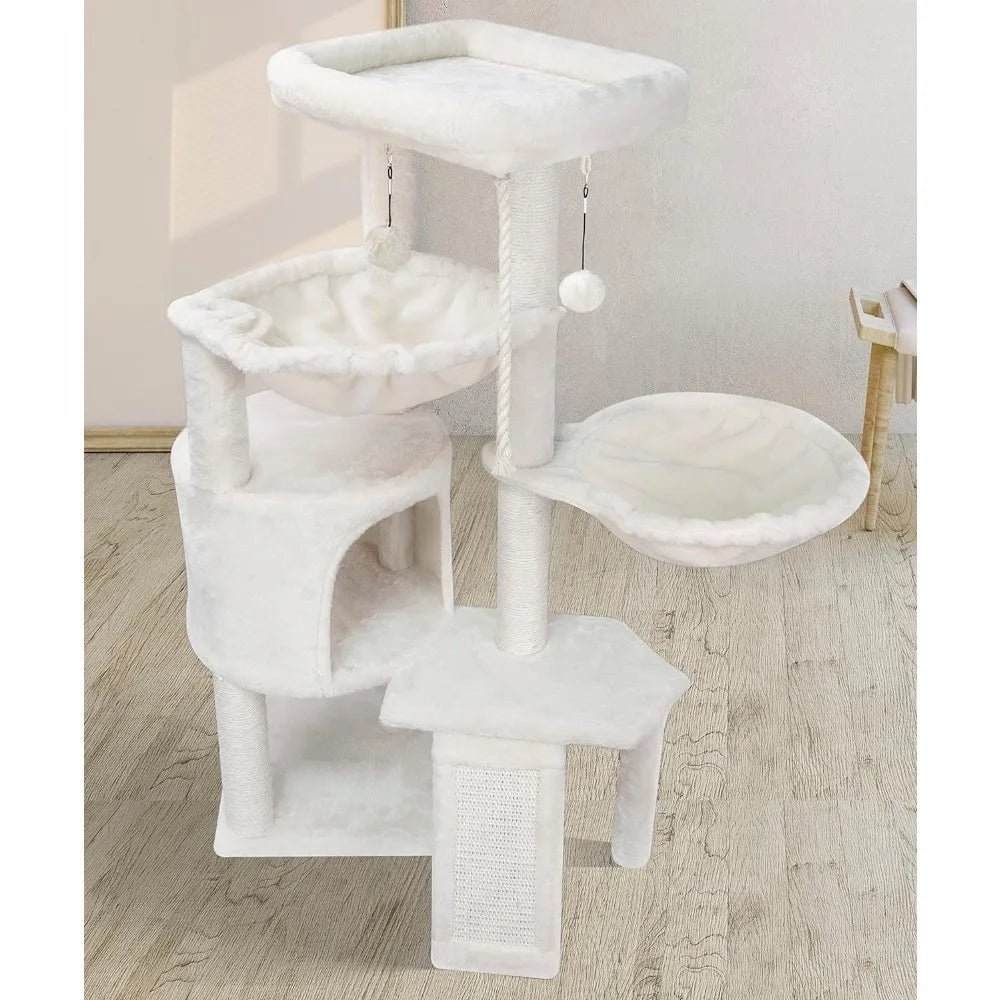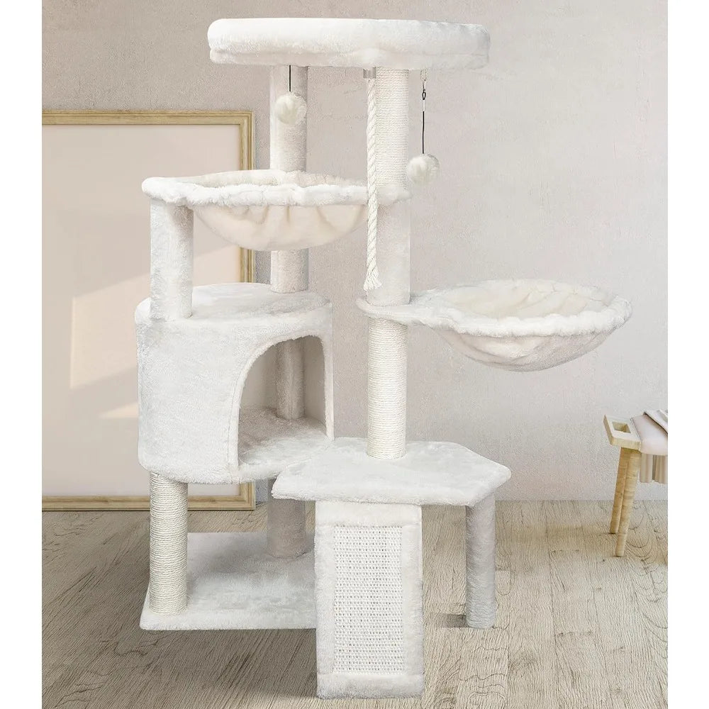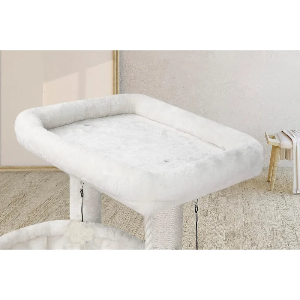 Three Layer Cat Tree with Cat Condo Scratch Pad and Two Hammocks,Beige