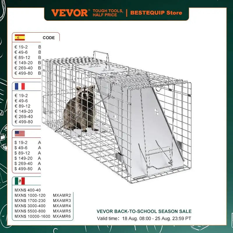 VEVOR 24/31/42/50in Live Animal Cage Trap Folding Humane Cat Trap Galvanized Iron with Handle for Rabbits Squirrels Groundhogs